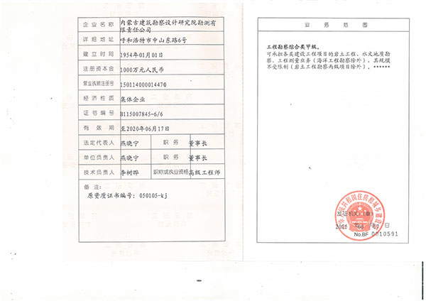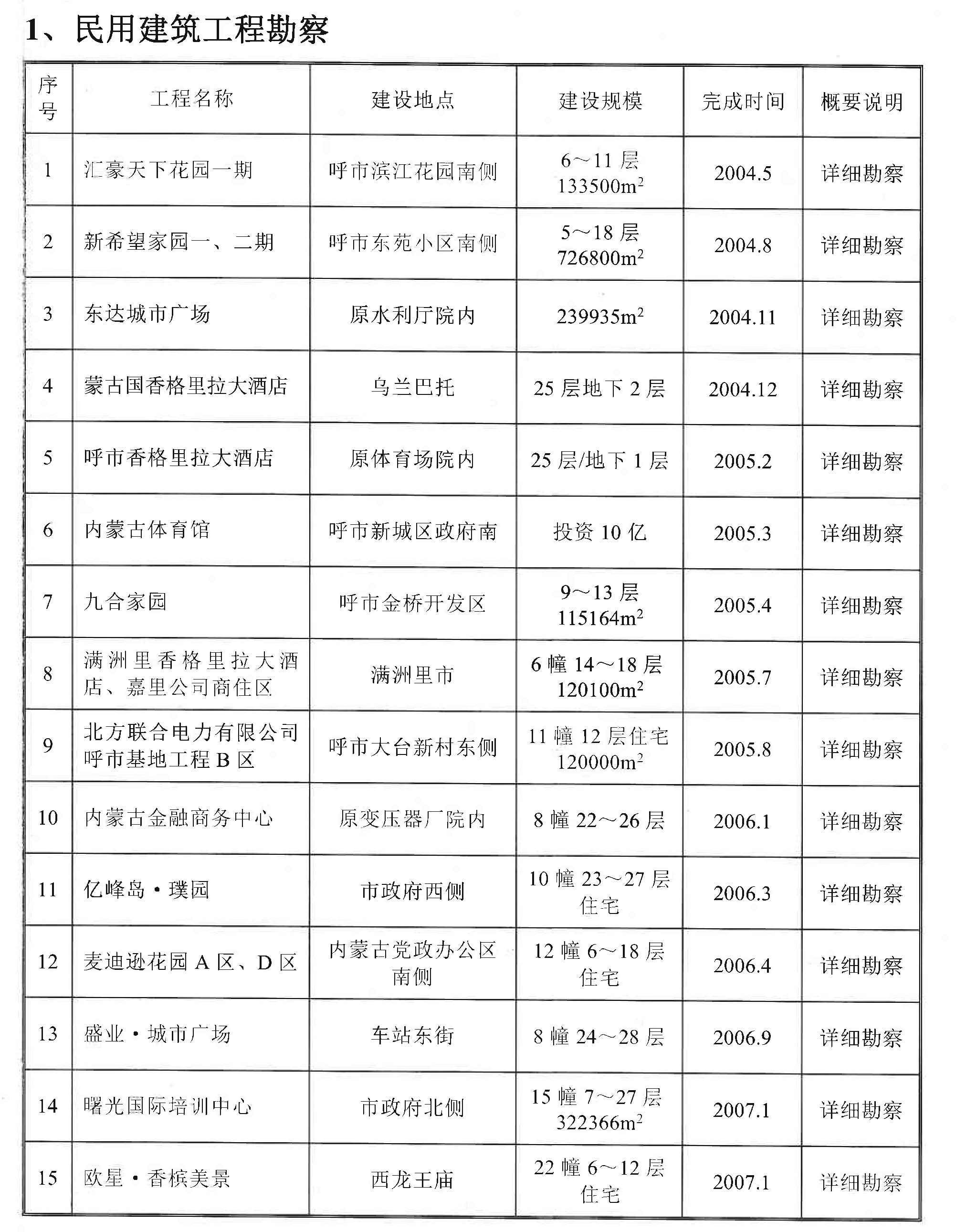 • 內(nèi)蒙古建筑勘察設(shè)計(jì)研究院勘測有限責(zé)任公司,是全國首家完成 轉(zhuǎn)企建制的省級建筑勘察設(shè)計(jì)單位。公司前身為內(nèi)蒙古建筑勘察 設(shè)計(jì)研究院勘測分院, 成立于1954年 ,經(jīng)過六十多年的發(fā)展, 現(xiàn)已成為全區(qū)技術(shù)力量雄厚、專業(yè)設(shè)置齊全的集巖土工程勘察 、 設(shè)計(jì)、治理、檢測、監(jiān)理、咨詢、水文地質(zhì)勘查、工程測量、科 研為一體的綜合性企業(yè) ... ... [查看詳情]
